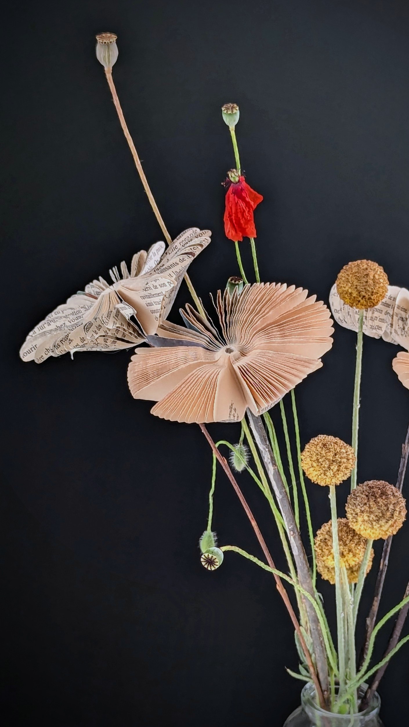 I have a profound appreciation for flowers, with a particular affinity for poppies. When these flowers are presented alongside paper flowers, I experience an even greater sense of admiration.