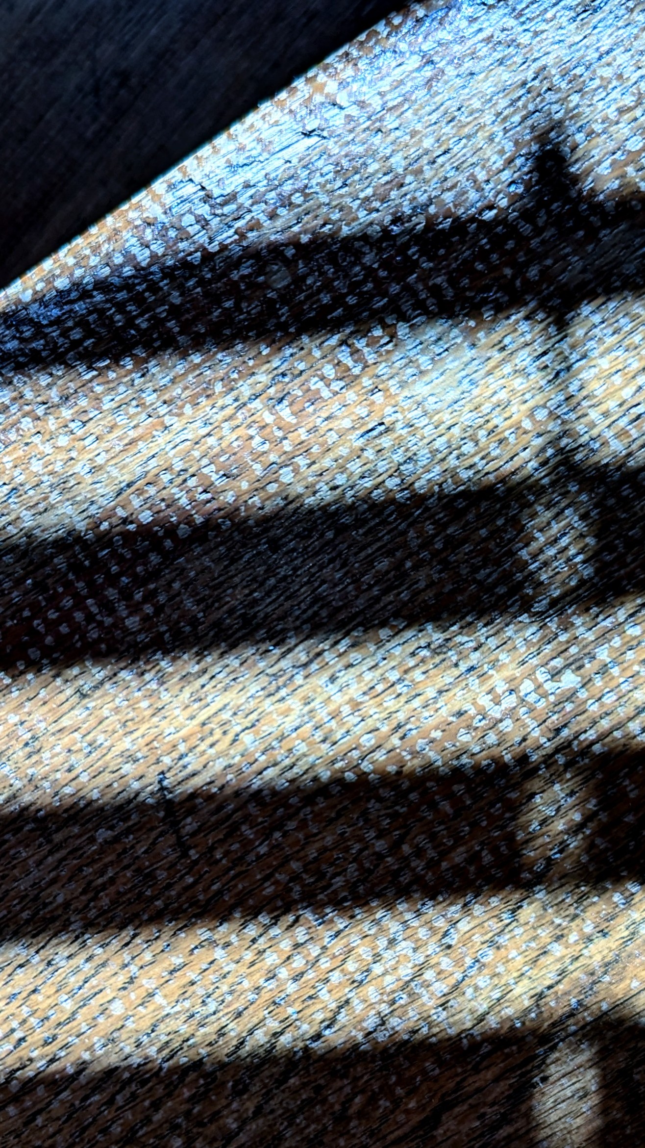 I have an old wooden staircase in my house that was covered in carpet for many years. A few years ago I removed all the carpet and revealed the true beauty of the stairs. As I walked down the stairs this morning I saw the sunlight coming in and creating an interesting pattern on the stairs. Funnily enough, I could still see some of the glue (which normally is invisible) that used to hold the carpet in place, but I really liked the pattern.